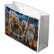 Släpp upp spookandan med den här eerie Halloween-designen med en hundar-förpackning under en mörk, månbelyst himmel, omgiven av flygande fladdermus och glödande pumpor. Perfekt för dem som kärlek en aning skrämmande roligt med sina hårigets vänner!