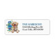 Den lämnat sidan av dessa returetiketter har porträtt i en adabel Cockapoo-hund. Bilden visas bredvid en vattenfärgsblått, lavender och grönt blommigt bouquet. Din anpassningsbar är svart och matchar blå på högerna.