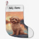 Cockapoo Hund som sitter vid en sjö vid solnedgång. Lägg till denna bild på andra produkter. Lägg till din egen text också. Massor av husdjur i mina butiker.
