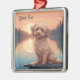 Cockapoo sitter vid en sjö vid solnedgång. Lägg till denna bild på andra produkter. Lägg till din egen text också. Massor av husdjur i min butik.