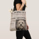 Cockapoo-väska i vintage-stil med klassisk tidningsdesign och en charmig Cockapoo-porträtt. Perfekt för Cockapoo-ägare och hundälskare som vill ha något unikt och personligt. En bra presentidé för alla som är besatta av sin hund och älskar tidlös vintage-stil.