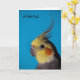 En närbild av en cockatiel mot en blåttbakgrund med en roligt, födelsedagtextmeddelandet eller skräddarsy den för något tillfälle för cockatielälskare i ditt liv!