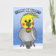 En teckning av en manlig normal grått-cockatiel håller en strimlad julprydnad i sin näsa framför en blå snowy himmel. Ovanför hans huvud lyder: "Glad helg!" På insidan står: "Önskar du och din familj en glatt julhelg!" Underbar att skicka till alla dina vänner i fågeln älskare.