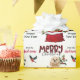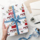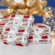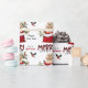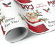 Det upprepade mönster på denna söta julomslutning papper är en bild av en blond Cocker Spansk valp-hund som pissar ut från en röd och vit Helgdag-presentväska. Bakom honom ligger en sprit av grå och röda bär. En röd och svart bullfinkfågel kommer snart att landa. Stiliserad röd och svart buffelpläterad text säger GOD JUL och "Gott nytt år" är mörk grönt. Din egen namnteckning finns i två fält för att du ska kunna anpassa dig.