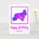 Cocker spaniel hund silhouette i galet shock rosa och blå, ljus modern abstrakt mönster. Lustigt födelsedagsmeddelande inuti kan ändras till vad du vill. Anpassa med namn på framsidan.