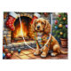 This cozy holiday illustration showcases a sweet Cocker Spaniel sitting beside a warm fireplace, wrapped in glowing Christmas lights with festive stockings hanging above. The breed’s signature soft ears and gentle expression bring extra charm to this seasonal artwork. Perfect for Cocker Spaniel lovers shopping on Zazzle, this design makes a wonderful Christmas gift and adds a heartwarming touch to holiday décor.