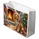 Cocker Spaniel by Fireplace with Christmas Lights
