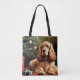Golden Cocker-spanjorerna har en fredlig helgdag hemma av det dekorerade Julgran.