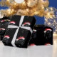 Svart cockerspanielspanielansikte som ha på sig jul för hund älskare för en jultomtenhatt som slår in papper