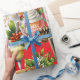 Cocktail Christmas Party with Drinks on Red Wrapping Paper