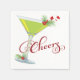 Modern Cheers typography Cocktail Helgdag jul Party Pappra Napkins med en grönt martini-glas, försedd med holly och en röd och vit rand candy cane
