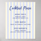 Det vita medelhavsmusslet med möhippa-cocktail-meny som innehåller en mjuk och inbjudande färg-palett med butterkräm och blått rand. Den här stilla bakgrunden kompletteras perfekt med roligtens mörk blått handskrivna teckensnitt, som skapar en harmonisk blandning av färg.