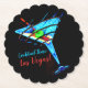 Rundspalopat papprare underlägg med den ikoniska martinismens neonskylt i martinglas nattetid på svart bakgrund. Texten lyder: "Cocktail Time Las Vegas" och det är helt anpassade.