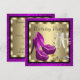 Eleganta födelsedagsinbjudningar med lila zebra-mönster. Denna vackra födelsedagsinbjudan i guld och lila zebra-mönster med högklackad sko är lätt att anpassa för ditt evenemang genom att helt enkelt välja "Anpassa!" för att börja lägga till dina evenemangsuppgifter, typsnitt, teckenstorlek och färg samt formulering. Observera att alla kort- och inbjudningsdesigner du hittar på Zazzle är tryckta bilder utan faktiska ädelstenar, band, upphöjda eller präglade delar.