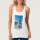 Tanktop med ett foto av coolan Tiki Totem Pole i Cocoa Beach, Florida. Den här polen sitter bredvid berömden Cocoa Beach Pier och de olika skyltarna visar hur många mil den är till olika ställe. Text kan redigeras. Tittar du fler utskrifter eller produkter? Besök gärna min butik: http://www.zazzle.com/timelessmomentsphtgy Det här fotot togs av Jennifer White med Timless Moments Photography. Alla bilder är upphovsrättsskyddade © Timless Moments Photography.
