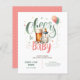 Rustikalt och sött Öl och flaskor, Skål för bebisen, Bebisen brygger med vilda blommor, grönska i salvia och persikofärgade nyanser baby shower inbjudan, könsneutral. Textfält på båda sidor.