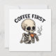 Coffe först Skrämmande Halloween Skelett Koffein Julkort