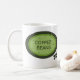 En modern kaffeskylt säger "kaffebönor i färg av grönt och brunt". Några lösa kaffebönor bredvid den.