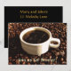 Anpassa enkelt texten på denna vackra Brinner-inbjudan. Vilken kul att servera frukost till middag. Denna inbjudan visar en vit kopp med nybryggt kaffe på en bädd av mörkbruna rostade kaffebönor. Munsvettande blåbärsmuffins arrangerade på en blank glasskål pryder baksidan.