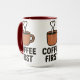 Start your day with humor and style using this ceramic mug featuring a bold graphic of a steaming coffee cup with heart-shaped steam and the phrase COFFEE FIRST in bold letters. Perfect for coffee lovers, office mornings, or as a fun gift for friends who can’t live without their daily brew. Durable and charming, this mug makes a statement with every sip.