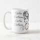 Add some humor to your morning with this funny coffee mug. A funny sarcastic retro lady and quote, "Coffee, Caffeine,"