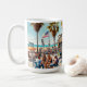 Perfekt för resan och kaffe älskare. Vattenfärgsmålningen fångar på ett vackert sätt en mat lastbil som säljer kaffe i Venice Beach, Kalifornien. Lastbil är dynamiskt och artificiellt dekorerat med färgstarka murar och strandtematerade motiv som står parkerade på den bustiande boardpromenaden. Bakgrunden är att oceanen och handflatan träd sviktar försiktigt och kapslar in själva kärnan i strandinställningen. Omkring lastbil njuter en mängd olika bikupor, skater och turister av sitt kaffe, vilket bidrar till den livliga atmosfären. Scenen är i själva verket Venice Beach, där folk studerar på strandstolar eller sitta direkt på strandpromenaden, allt under det ljusa Kalifornien sol. Målningen användor en palett med ljust, ljust färg för att betona den återfallsvib och den eklektiska kultur som råder i detta ikoniska område i Kalifornien.