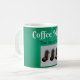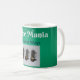 Ett mugg som designade med ett foto på tre kaffe koppar och ord - "Kaffe Mania" på bästa sätt