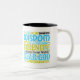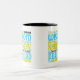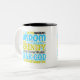 Serenity Prayer ord moln i 3 färg, svart, ljust grönt och ljusblå. Konstruktionen finns på båda sidor om mugg. Inuti färg i mugg är svart.