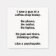 För sarkasmen älskare i oss alla. Kolla in den här häxan: "Jag såg en kille på en kafé idag. Ingen mobil. Ingen tablett. Ingen bärbar dator. Han satt där. Drick kaffe. Som en psykopat." design på kläder och gåvor.