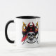 Den svarta och vita mugg har en bild av ett pirat-skalle på båda sidor om mugg. Anpassa det här objektet eller köp som det är. Lagrar Image all-free-download.com