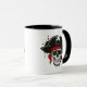 Den svarta och vita mugg har en bild av ett pirat-skalle på båda sidor om mugg. Anpassa det här objektet eller köp som det är. Lagrar Image all-free-download.com