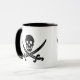 Den svarta och vita mugg har en bild av ett pirat-skalle på båda sidor om mugg. Anpassa det här objektet eller köp som det är. Lagrar Image all-free-download.com