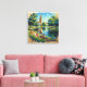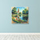 Fly till det förtrollande flodparadiset Coimbra genom detta fängslande impressionistiska mästerverk som hyllar Portugals mest poetiska stad i all sin naturliga skönhet och tidlösa ledighet. Ett magnifikt gyllene klocktorn reser sig majestätiskt i kompositionens mitt, dess eleganta arkitektur lyser varmt mot en lysande himmel som återges i mjuka blå, krämiga vita och mjuka nyanser av blekgul som tycks viska om fredliga eftermiddagar och evig nåd. Den lugna Mondegofloden slingrar sig graciöst genom förgrunden, dess kristallklara vatten målade i nyanser av turkos, djupblått och smaragdgrönt, reflekterar det gyllene solljuset och landskapets själ. Höga skuggträd med frodig smar