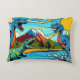 Cojín decorativo con diseño de dinosaurios, diferentes diseños en cada uno de sus lados.