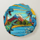 Cojín redondo con diseño de dinosaurios, diferentes diseños en cada uno de sus lados.