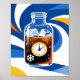 Celebrate the patience required for the perfect cup with this creative Cold Brew coffee art print. The dynamic illustration features a glass bottle filled with iced coffee, cleverly incorporating a clock face to symbolize the long steeping process essential for that smooth flavor. Accentuated with ice cubes, a snowflake icon, and a vibrant blue and orange swirl background, this design captures the refreshing essence of summer caffeine. It serves as a modern, energetic focal point for any kitchen, coffee shop, or office break room.