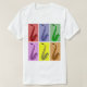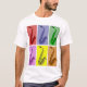 En panel av färgrika saxofoner i rött, slösar, görar grön, lilor, gult och orange ordnat i ett mönster 3 x 2. Varje sax är fastställd i en rektangulär bakgrund förser med rutor med en motsvarande ton.