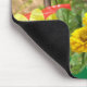 Unik och färgrik natur i flygfotografimousepad. Designen inkluderar en hummingbird, en fjäril, en humla och raddablommor. Perfekt för naturälskare.
