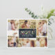 Det eleganta enkla julhälsningkortet presenterar 6 av dina personliga foto och text för Joyeux NOEL-typografi med julstjärnablommor och stränger ljus.