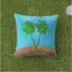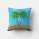 Dekorativ kudde som mönstras med en strandplats av tropiska handflatan, sanden och himmel som göras från en digital collage av vattenfärgen och mönstrad bilder