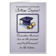 Det är mycket speciellt att skaffa sig en akademisk examen. Detta blå grått-kort visar en studentmössa och ett diplom. Ett inspirerande budskap fyller fronten. Perfekt kort för att gratulera antingen man eller kvinna till deras universitetsexamen.