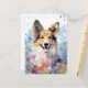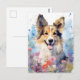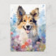 Färgrik akvarell konstverk av en Collie som sitter i ett fält med vårblommor.