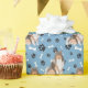 En bild av en vacker Collie-Hund är utmärkelsen i mönster på tillfällens pappra gåva. Hund sitter mitt i mönster på svart tass avtryck och vita ben och upprepas på en medelblå bakgrund. Perfekt för födelsedagar och många andra tillfälle.