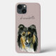 Det här är en målning av en regal tittar kollie hund. Hon har solbränna, svarta och vita päls.