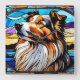 Collie Stached Glass-utseende Fyrkantig Klocka
