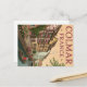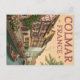 vintage affisch i Colmar, Frankrike. Visa charmerande halvtiotnumrerade hus i en kanal, blomfyllda fönsterlådor och en liten båt som flyter i vatten. Varma pastelltoner i använda: mjuka nyp, och ärliga gröntar. Titel: