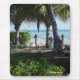 En färgrik cykel lutar mot en palmträd, kan hav biet som framtill ses i bakgrunden och gula blommor. Fotograferat i Florida. --- Photograph tas copyrightt på, av fotografen: Christina Spiegeland.