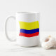 Colombia Flagga Denna Vågigt Flagga i Colombia Mugg finns också tillgänglig på Manar & Women's T-Shirts, Shirts, Tees, Buttons, Stickers, Keychains, Muggar, Mousepads, Hats, Tote bags, Gifts och annat. Glöm inte att du kan ändra storlek, färg eller stil på de flesta produkter eller göra flagga större eller mindre genom att använda funktionen "Anpassa". Levande Flaggor har mer än 400 unika Vågigt Flagga Design från Värld runt på en mängd olika kvalitetsprodukter från Shirts och Gift.