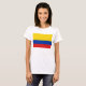 Framsidan av denna t-shirt visningar djärvt den colombianska flagga med dess särskiljande gult, blått och rött vågrät band. Detta motsvaras bakåt av ett attraktivt karta i Colombia.