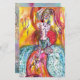 Färgfull, vit, vibrerande venetiansk maskerad karaktär. Sofistikerad blondinsk kvinna är sitta med en luddig mask i handen med mousserande guld, silver, blå, tealtyger av en baroque maskerad boll-dräkt med fjädrar och blommigt gnistor i vitt,rosa, gult färg.Vattenfärgning med golden folie och iridescent färg .